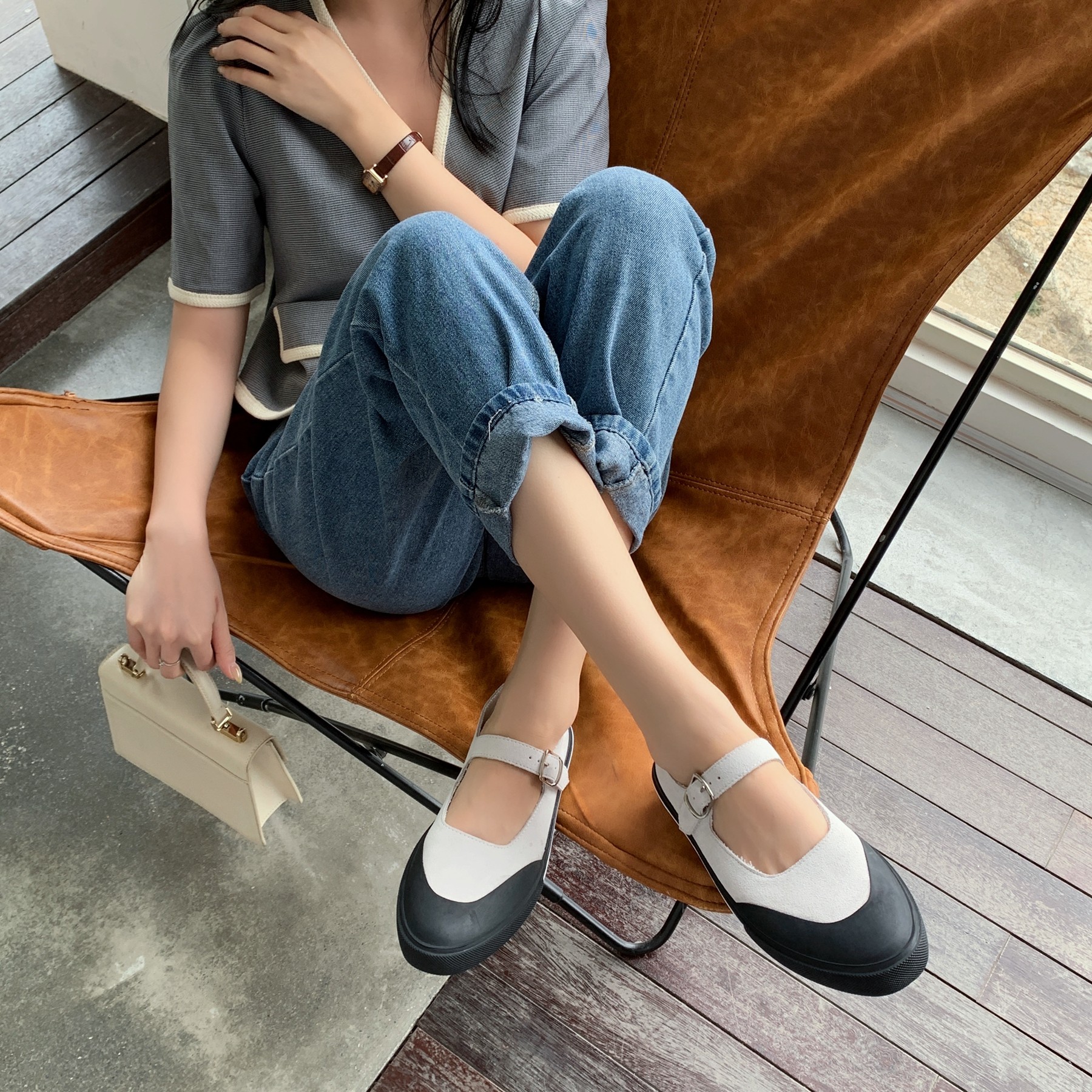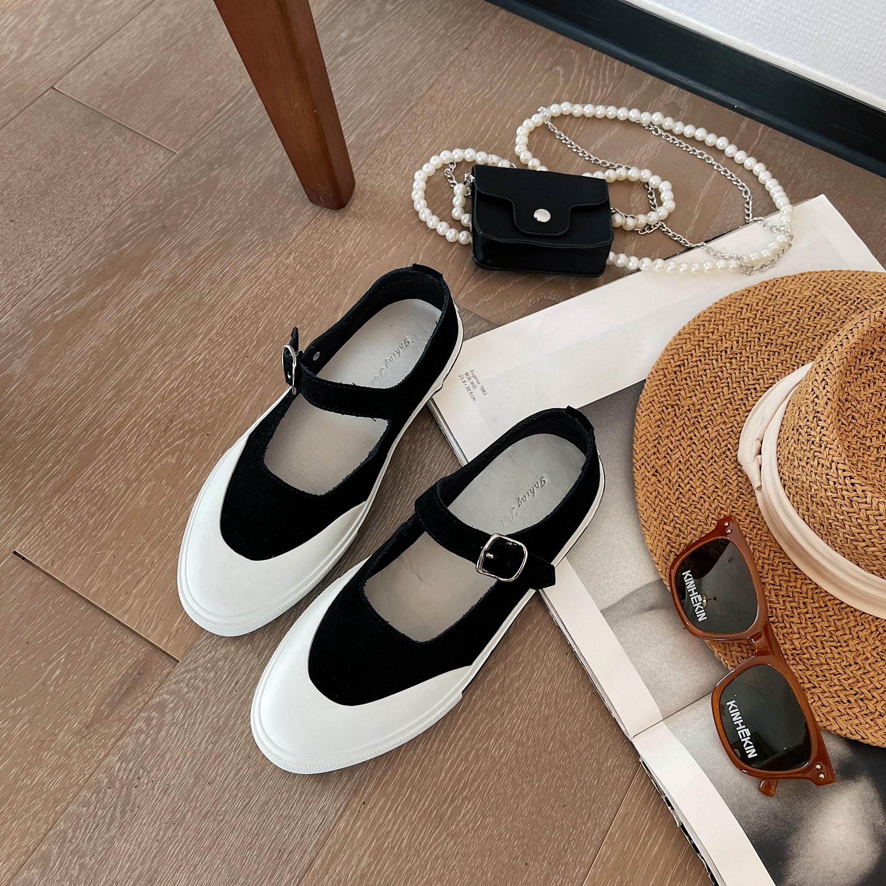 InkingPot彭姐 复古牛皮反毛皮平底单鞋学院女神平底轻便休闲鞋