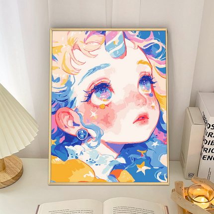治愈系卡通少女数字油画diy填充填色手工绘女孩丙烯油彩画装饰画