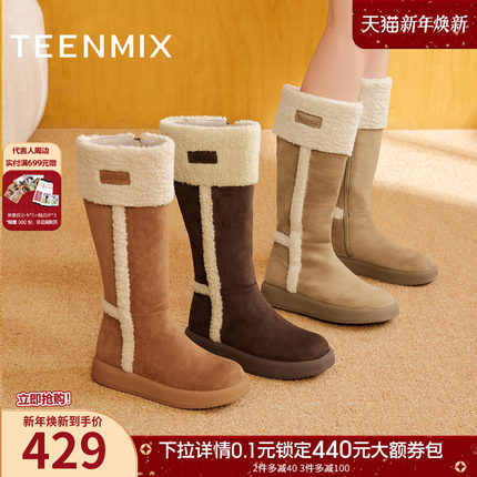 天美意厚底加绒保暖雪地靴长靴女棉鞋高筒靴子2025冬新款KXD51DG5