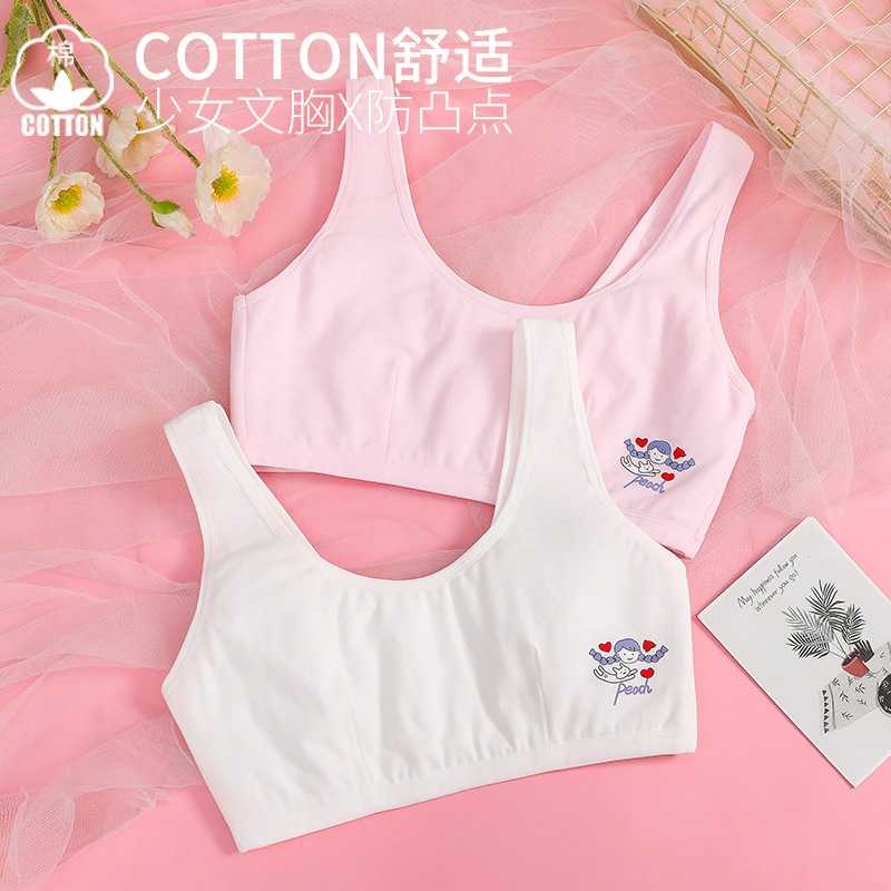 新款直销纯棉少女文胸 中大童无钢圈薄罩杯卡通小背心发育期学生