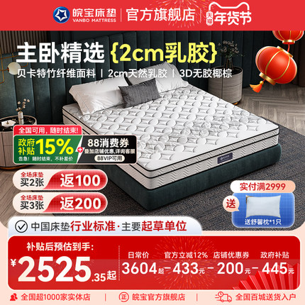 皖宝进口乳胶独立弹簧椰棕床垫棕