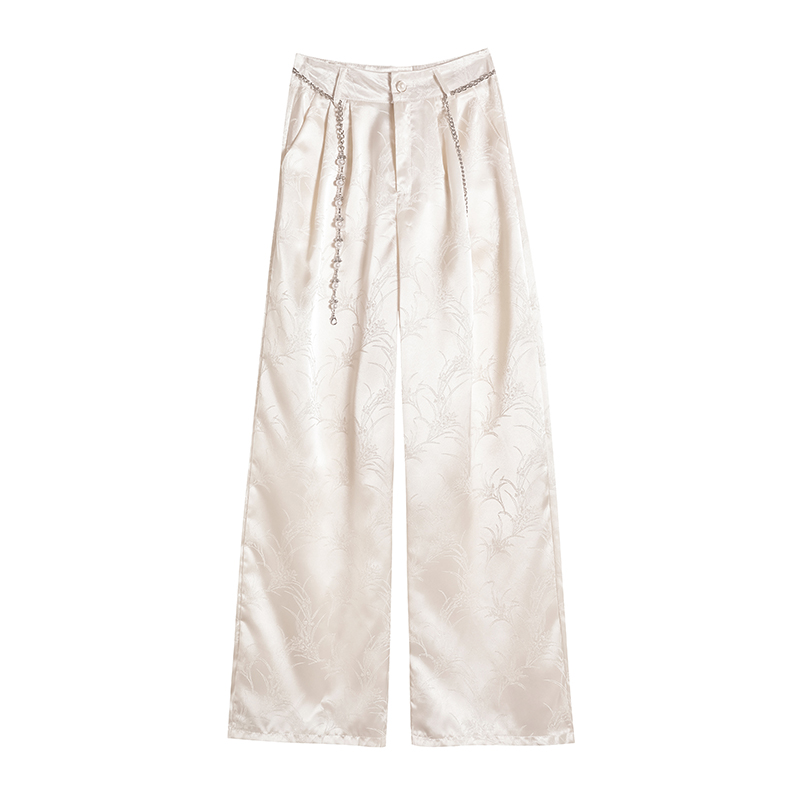 实拍2024夏季新款新中式缎面提花冰丝裤西装裤窄版阔腿裤女