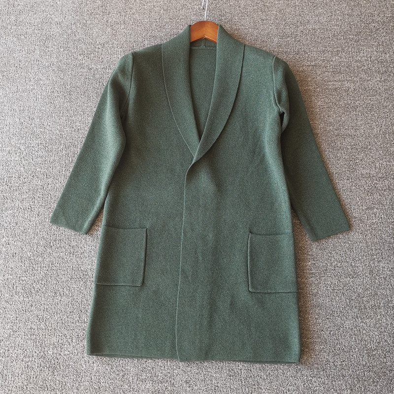 真丝+羊绒风衣超火宽松青果领中长款针织厚开衫毛衣秋冬外套 新品