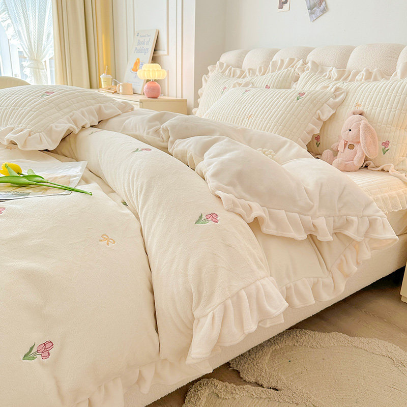 高级感刺绣牛奶绒保暖被套单件冬天防静电a类双人220x240加绒被罩