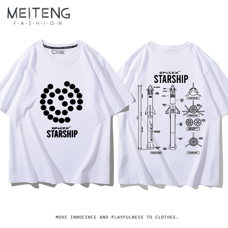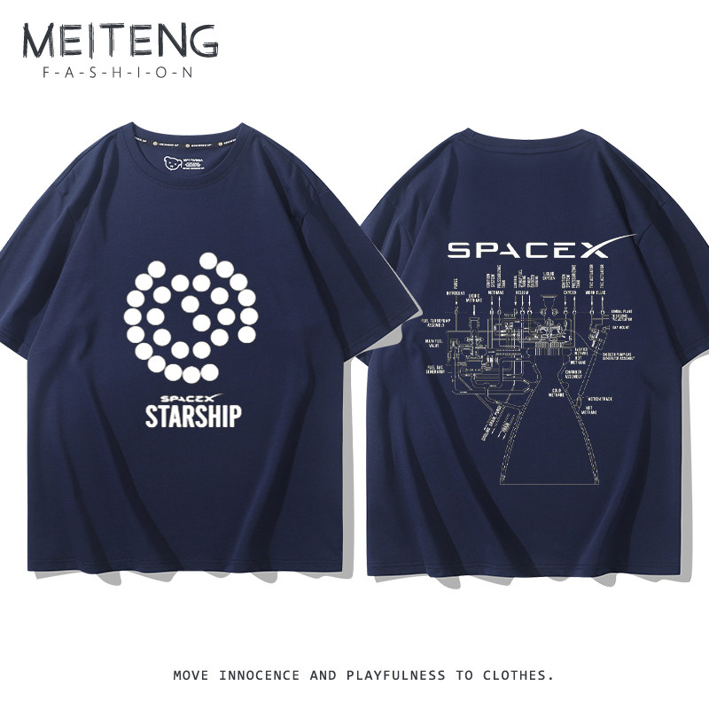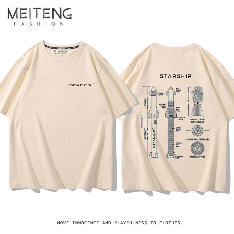 马斯克spacex星舰发射太空印花短袖T恤衫春夏季纯棉宽松半袖上衣