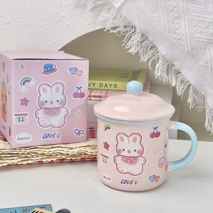 可爱陶瓷马克杯带盖大容量仿搪瓷办公室女情侣水杯子高颜值早餐杯
