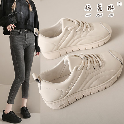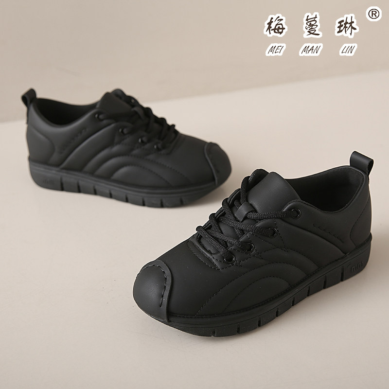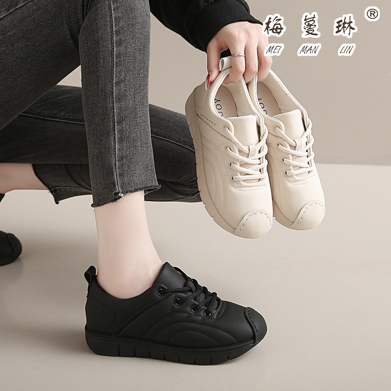 梅蔓琳软面女单鞋真皮2025春秋时尚百搭舒适厚底面包鞋系带运动鞋