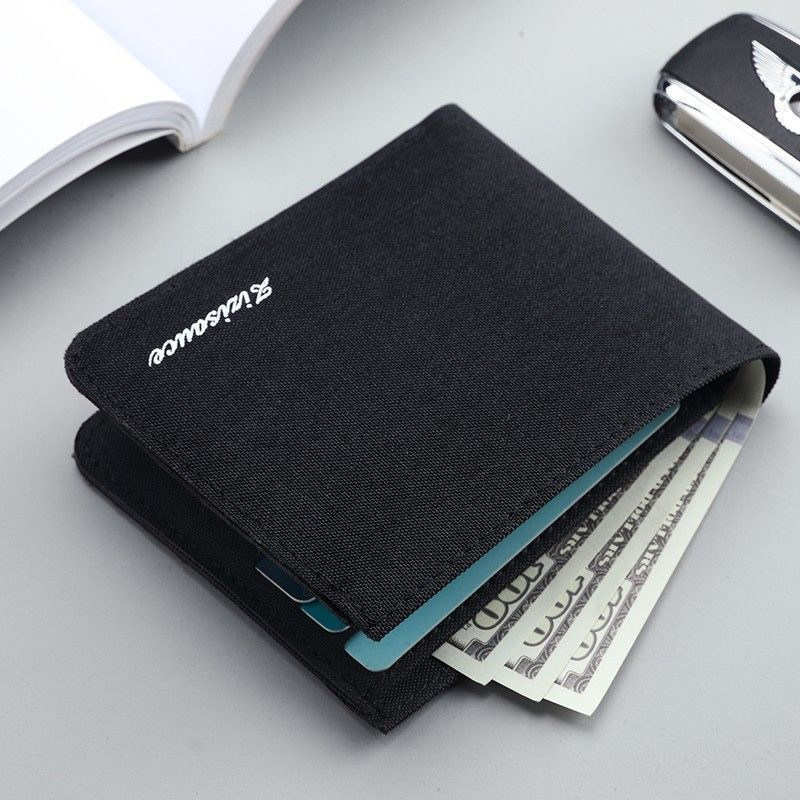 帆布钱包男短款学生薄潮款超薄个性皮夹简约可放驾驶证多卡位证件