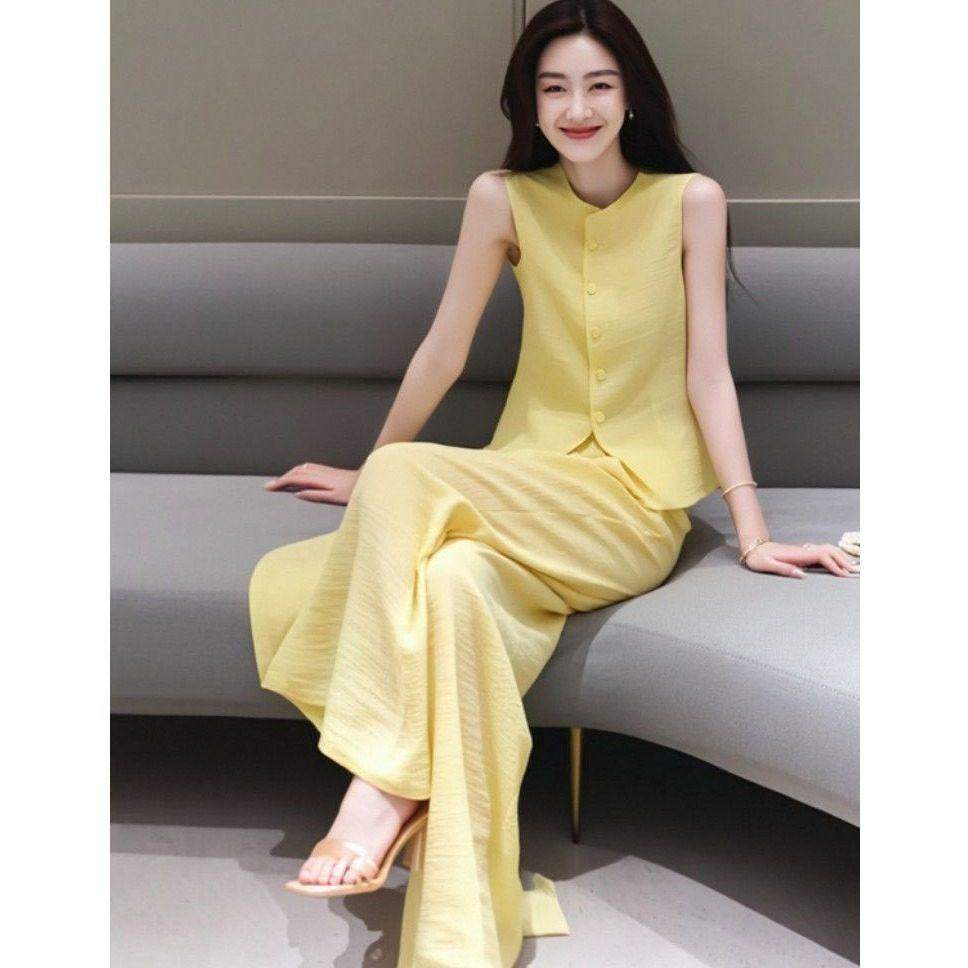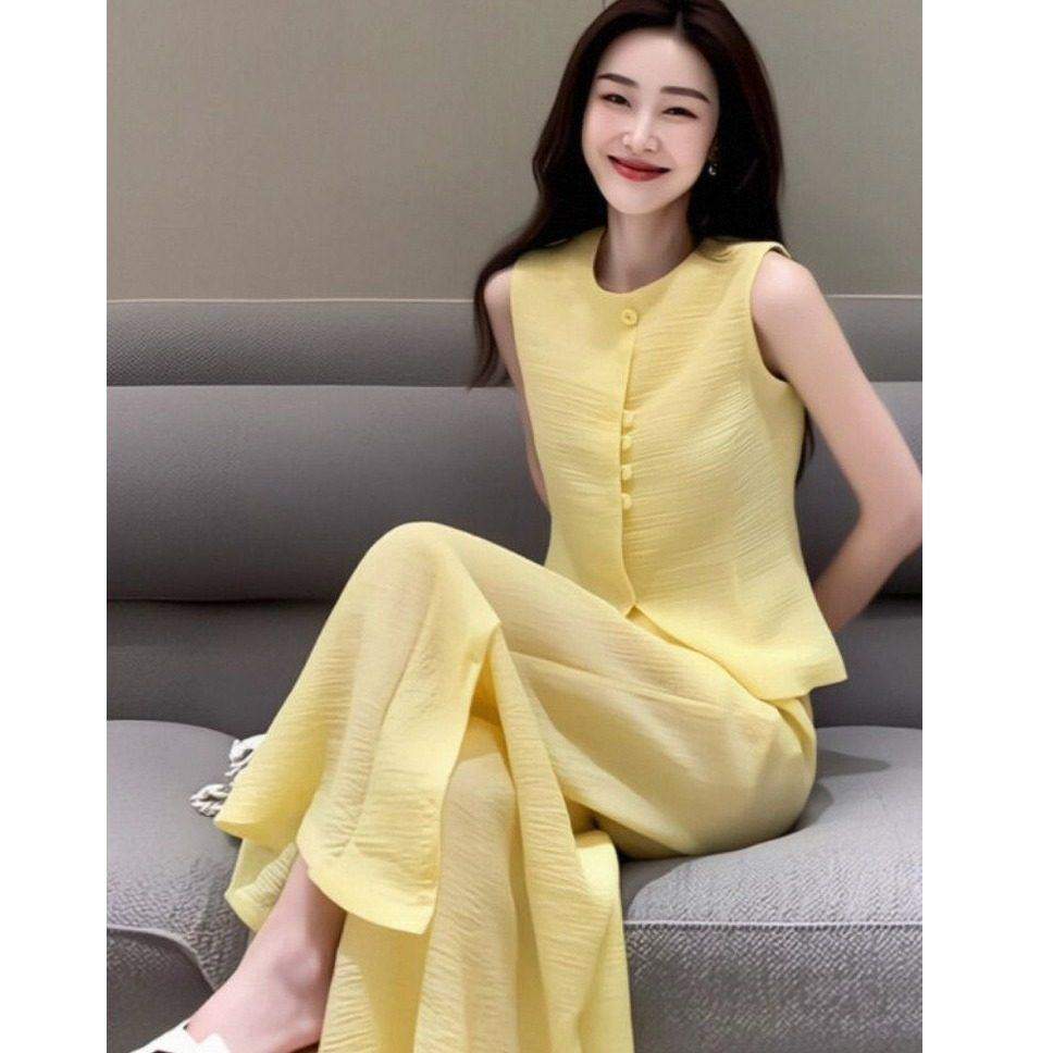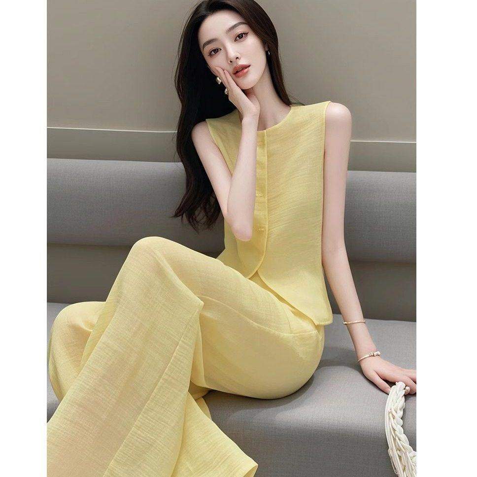 黄色洋气小衫小香风上衣裤子套装超好看高端气质名媛夏装搭配女装