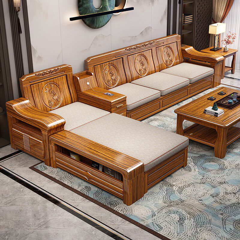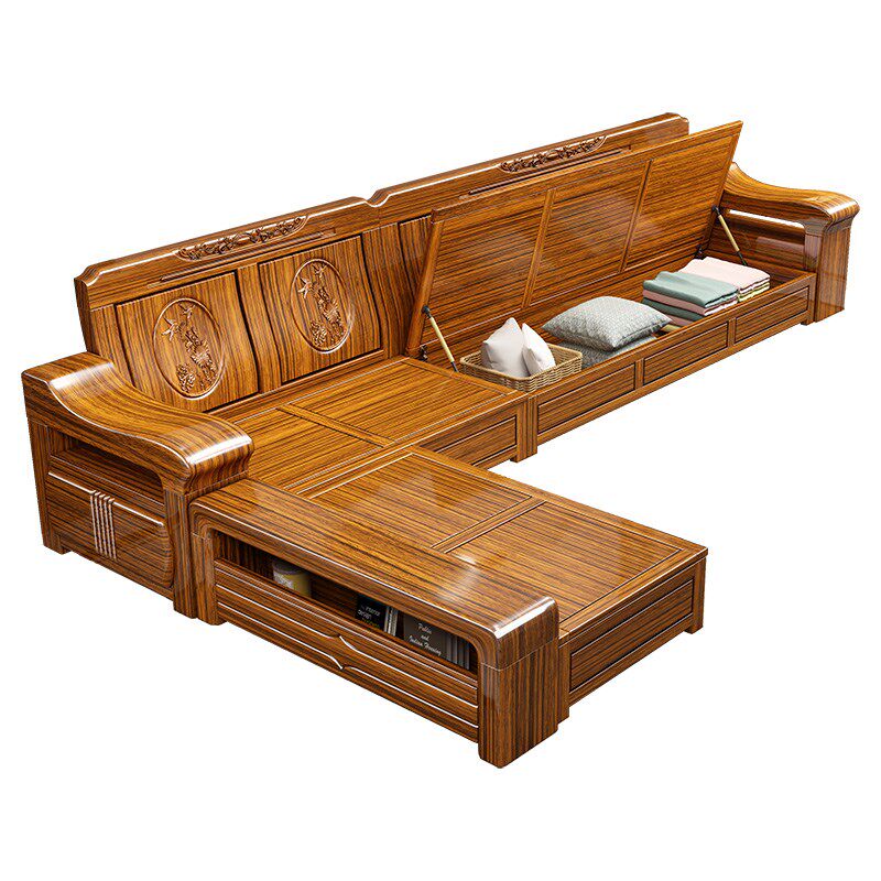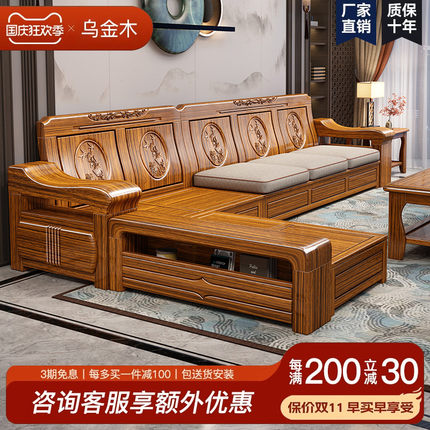 乌金木实木沙发新中式客厅冬夏两用组合雕花靠背可储物贵妃木沙发