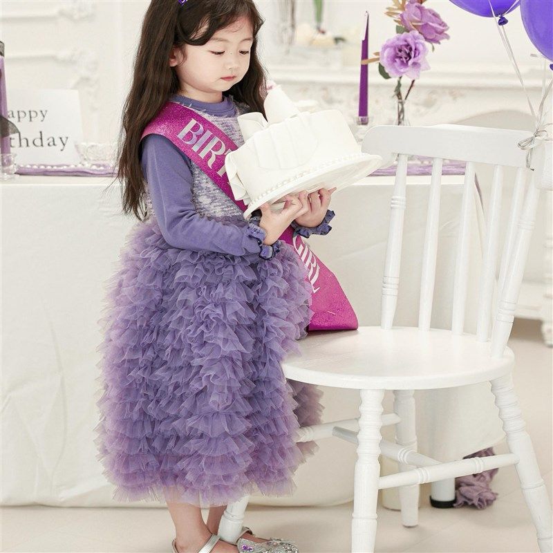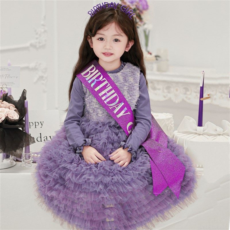 kw家女童生日公主裙秋冬女宝宝紫色无袖背心蓬蓬蛋糕礼服蓬蓬长裙