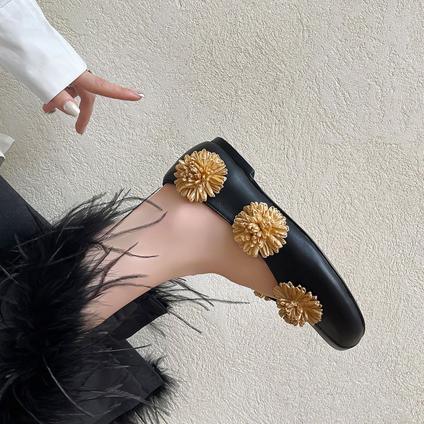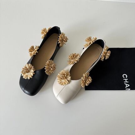 博主同款~2025真皮法式花朵方头