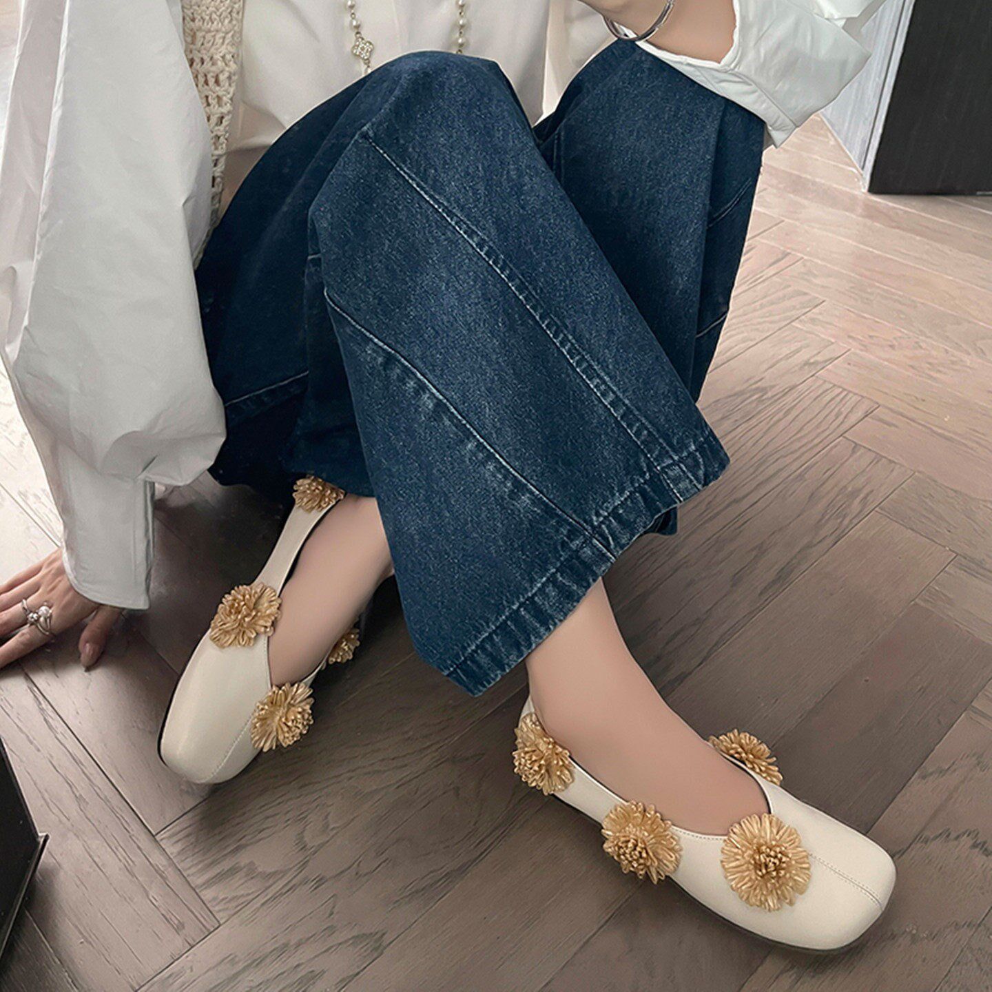 博主同款~2025真皮法式花朵方头平底奶奶鞋巨好看配裙子单鞋女夏