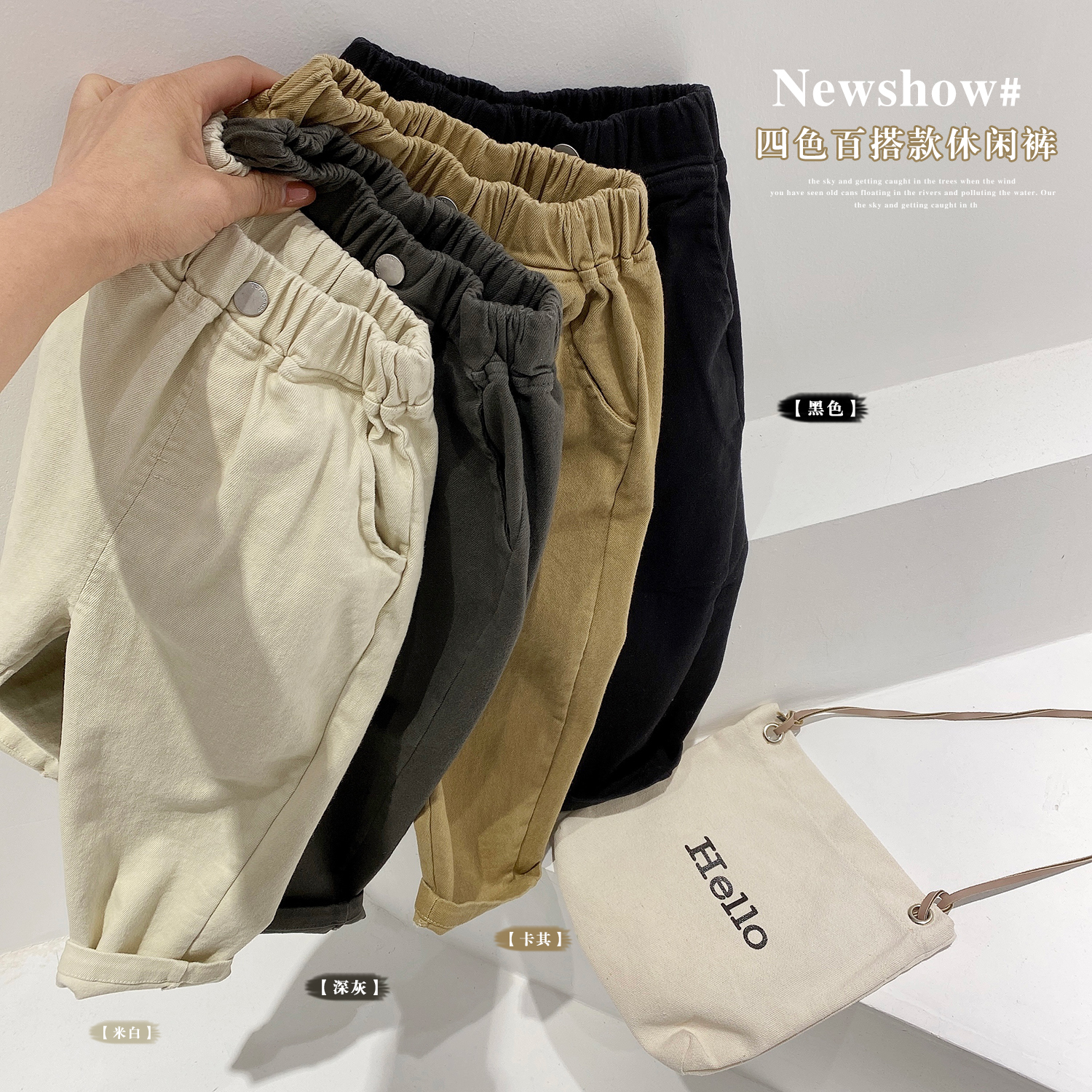 儿童休闲长裤男童裤子女童哈伦裤宝宝工装裤春秋款潮纯棉纯色简约