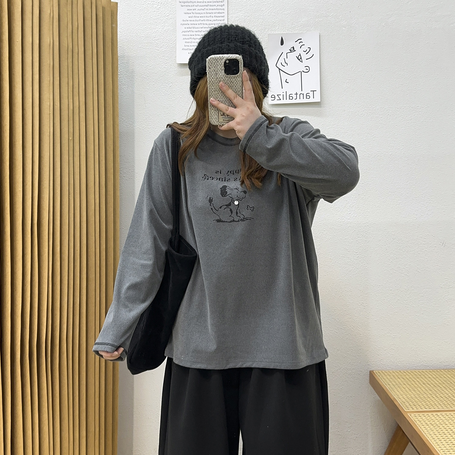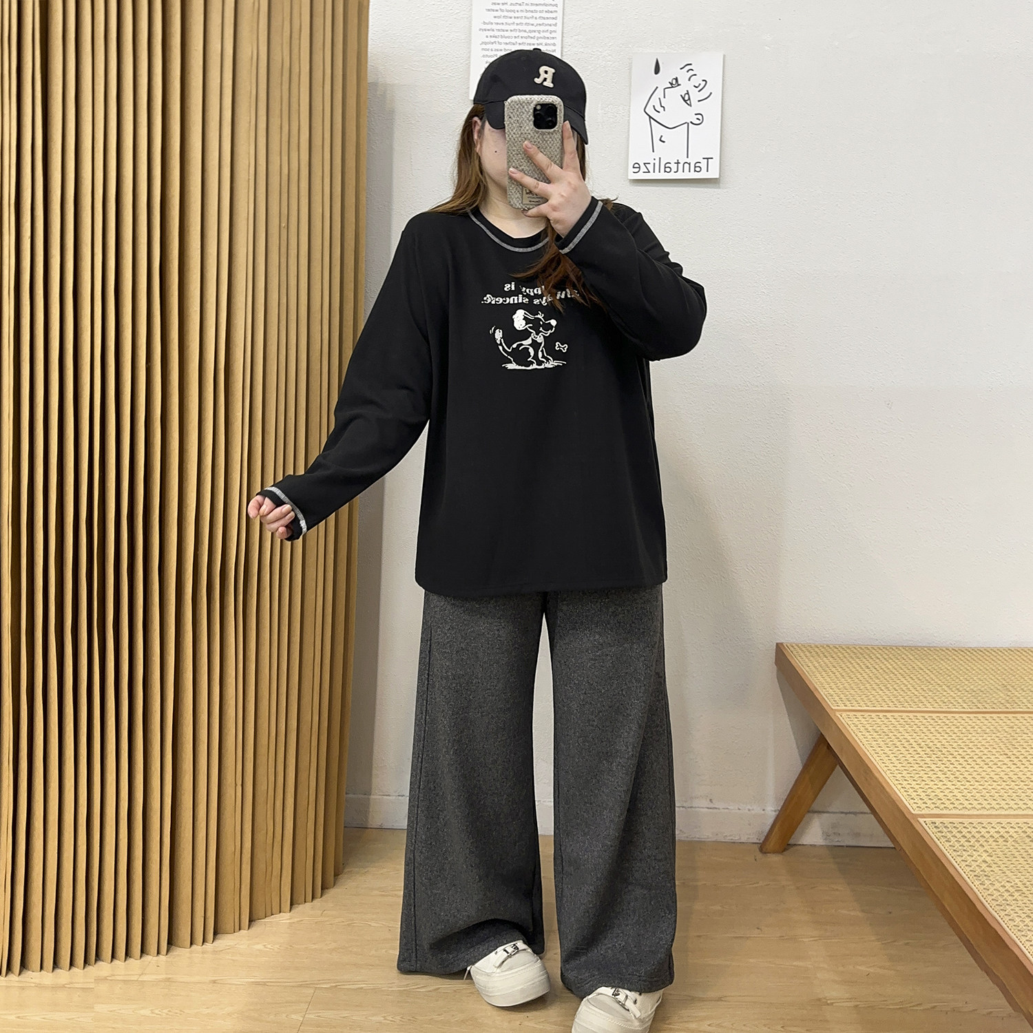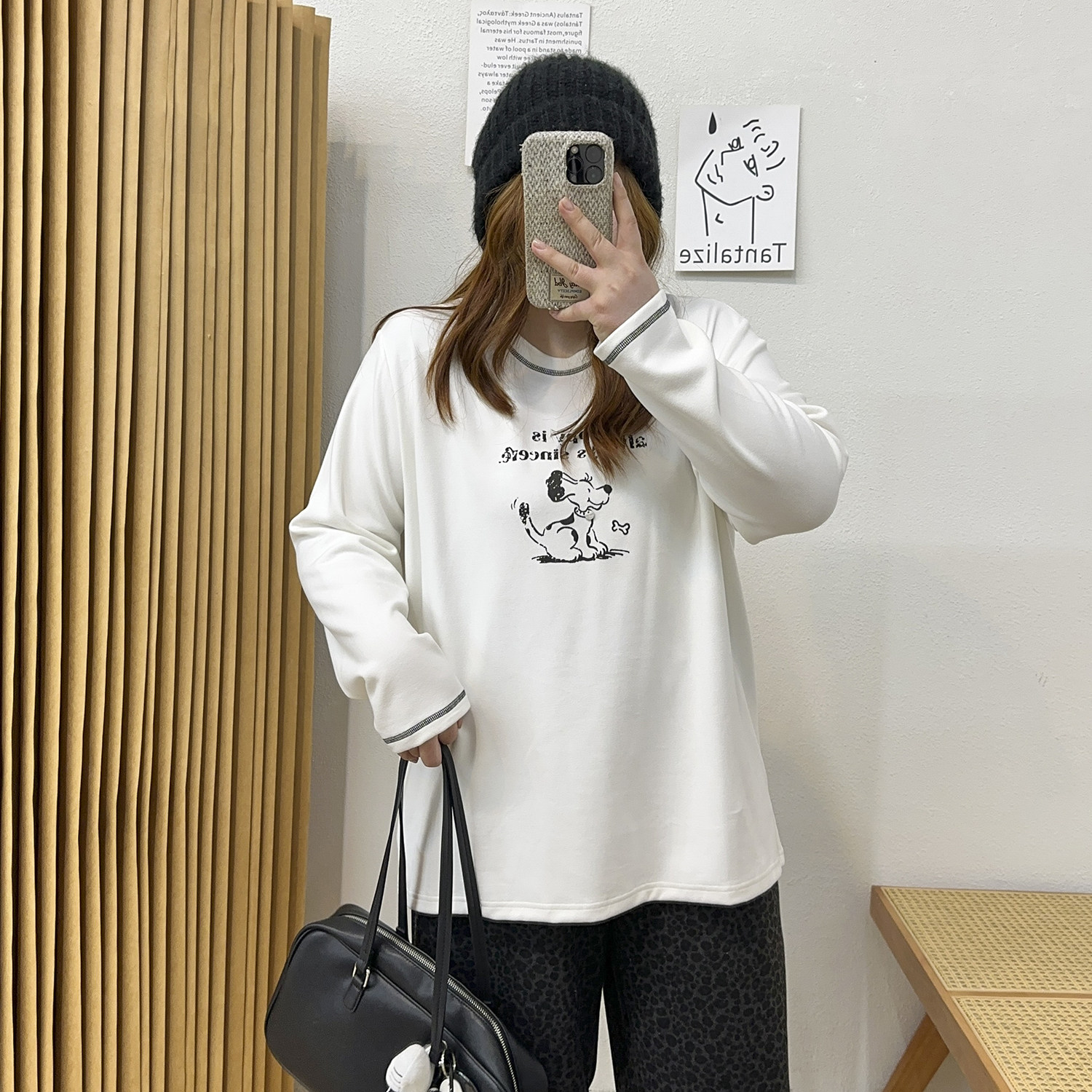宛宛大码胖mm卡通印花长袖T恤宽松遮肉显瘦内搭德绒打底衫上衣女