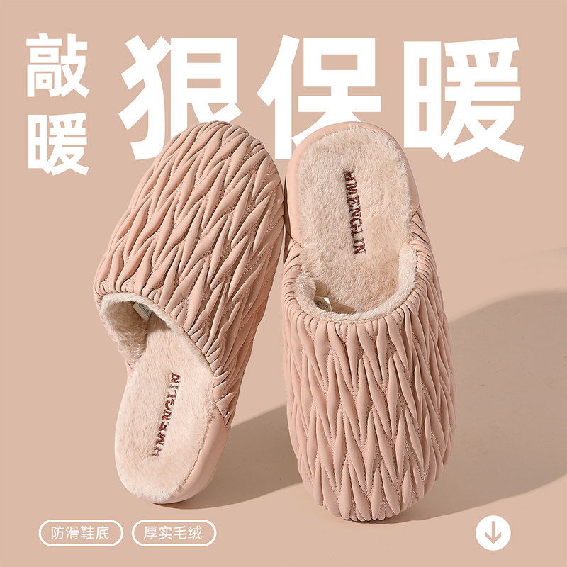 褶皱棉拖鞋女士冬季2026新款防水室内居家保暖加绒厚底防滑棉鞋男