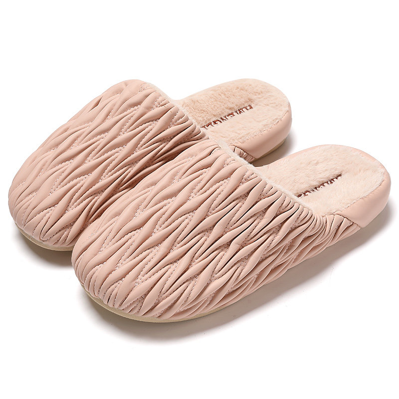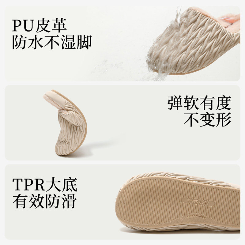 高级感防水棉拖鞋女pu皮加绒冬季