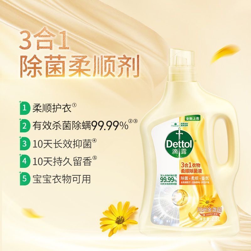 滴露(Dettol)衣物柔顺除菌液3合1柔顺剂衣物消毒液杀菌除螨