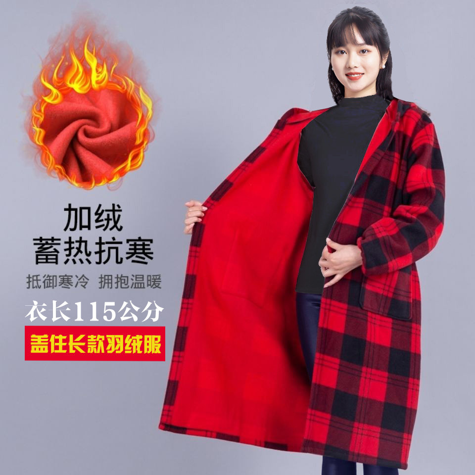 过膝长款罩衣女冬季成人加绒加厚时尚羽绒服外套工作服厨房围裙男