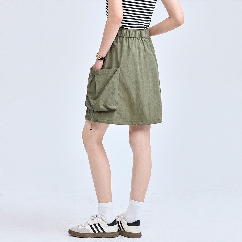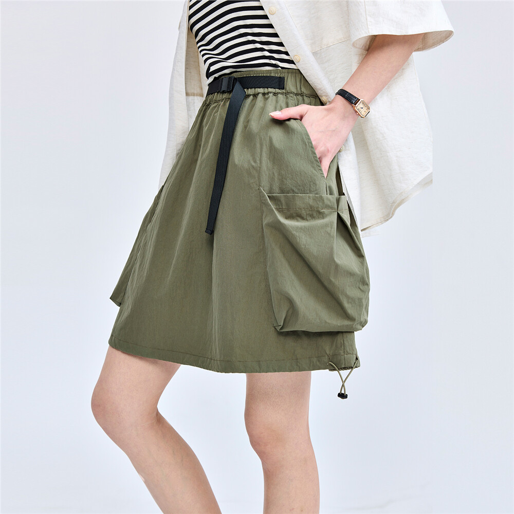 佐丹奴裙子女装工装口袋腰带松紧腰梭织花苞半身裙 18464618