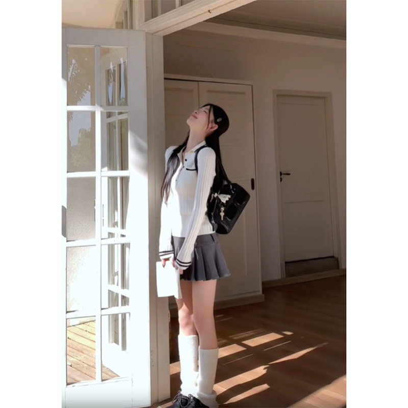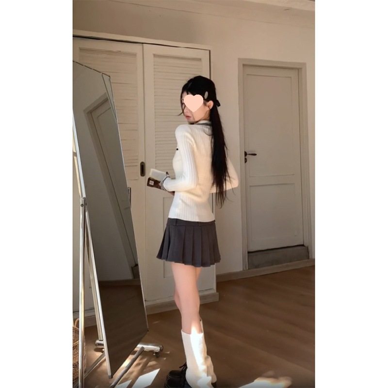 白色领针织打底衫女春秋长袖上衣设计感慵懒修身套头内搭毛衣