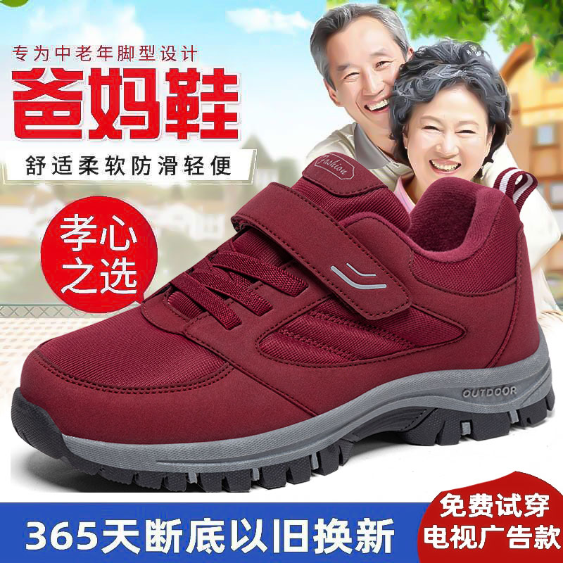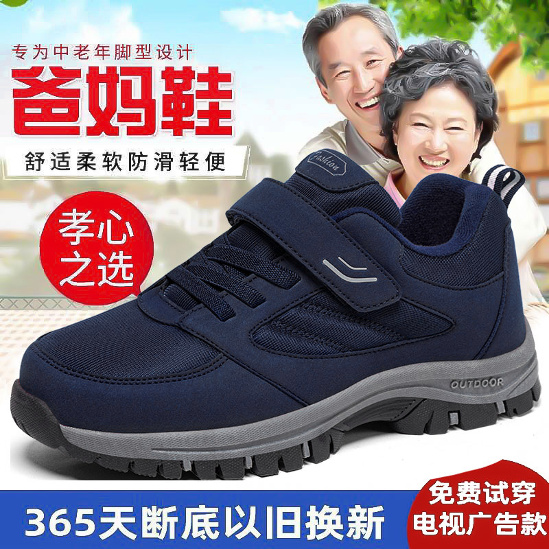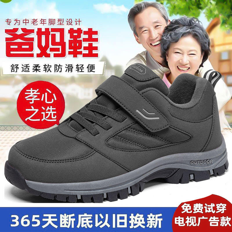老人鞋男秋冬季防滑软底爸爸鞋舒适户外休闲运动旅游中老年健步鞋