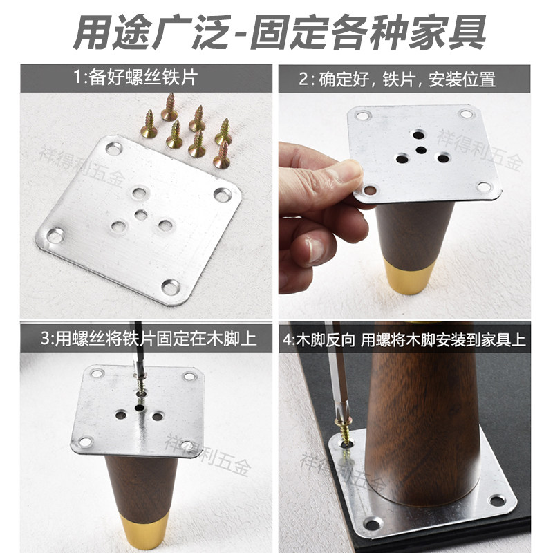 加厚正方形铁片家具沙发脚连接配件实木脚支撑木材固定片转接铁片
