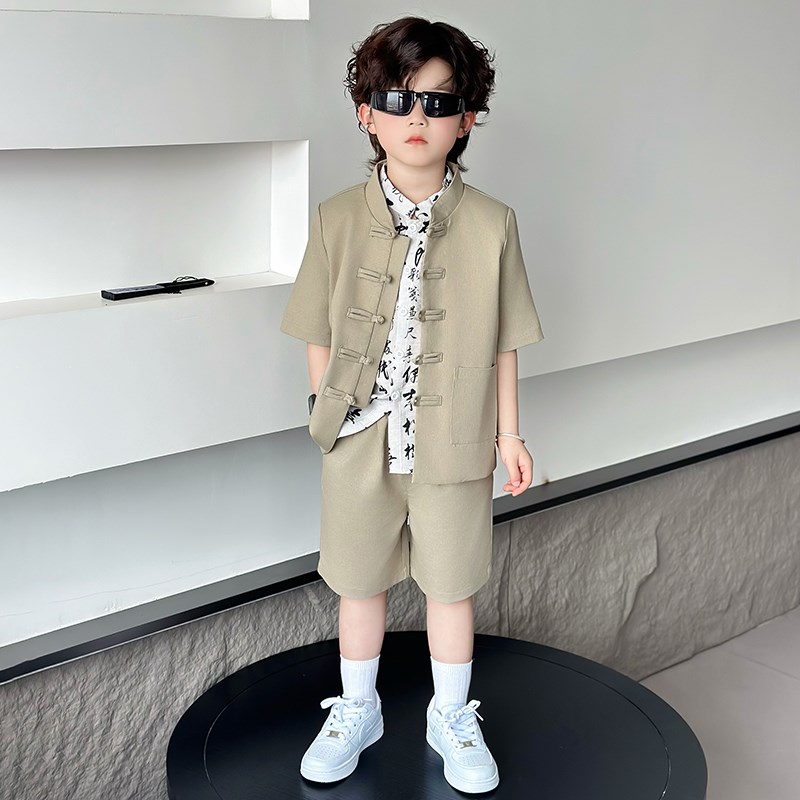 儿童中式套装亚麻薄款男童礼服唐装国风男孩中山装六一主持演出服