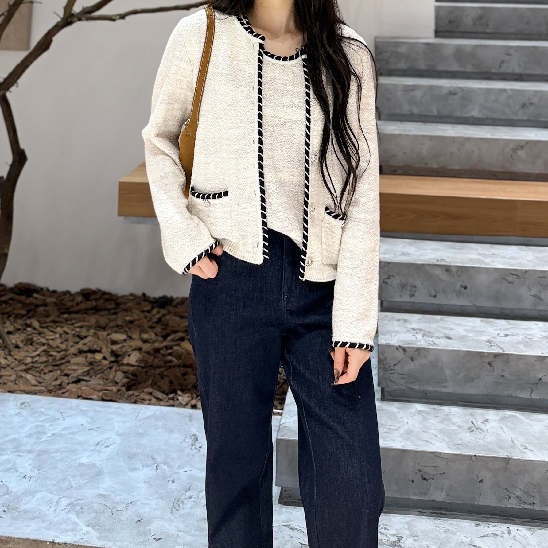 璀璨丹宁丨星空花纱羊毛珠片小香风圆领针织开衫外套-MY6279