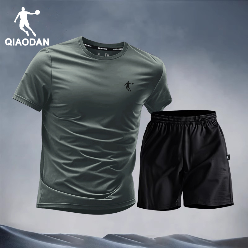 乔丹速干运动套装男士冰丝短袖短裤休闲两件套健身训练篮球跑步服