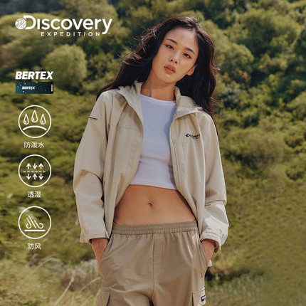 Discovery探索秋冬户外防风衣面料防水透湿连帽夹克外套女