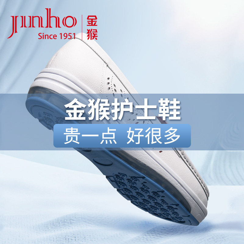 金猴舒适缓震真皮护士鞋