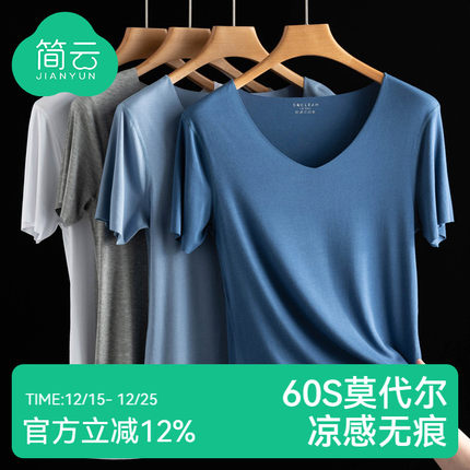简云莫代尔无痕短袖t恤男士薄款紧身内搭打底半袖上衣白色汗衫夏