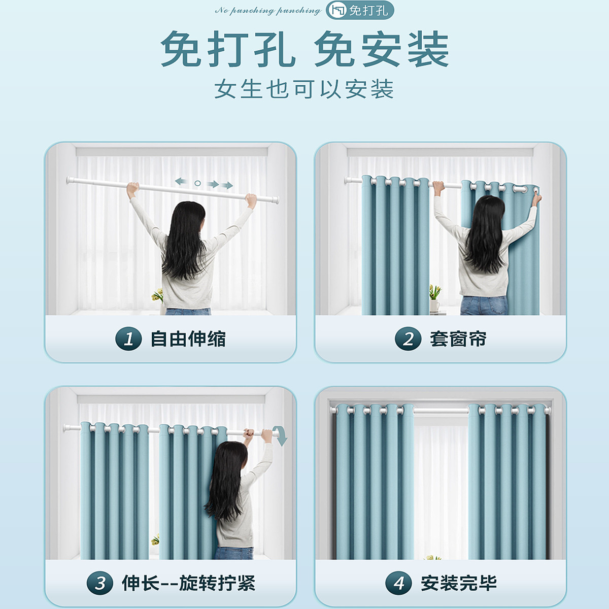卧室飘窗短窗帘免打孔安装2025新款伸缩杆一整套遮光遮阳布小窗户