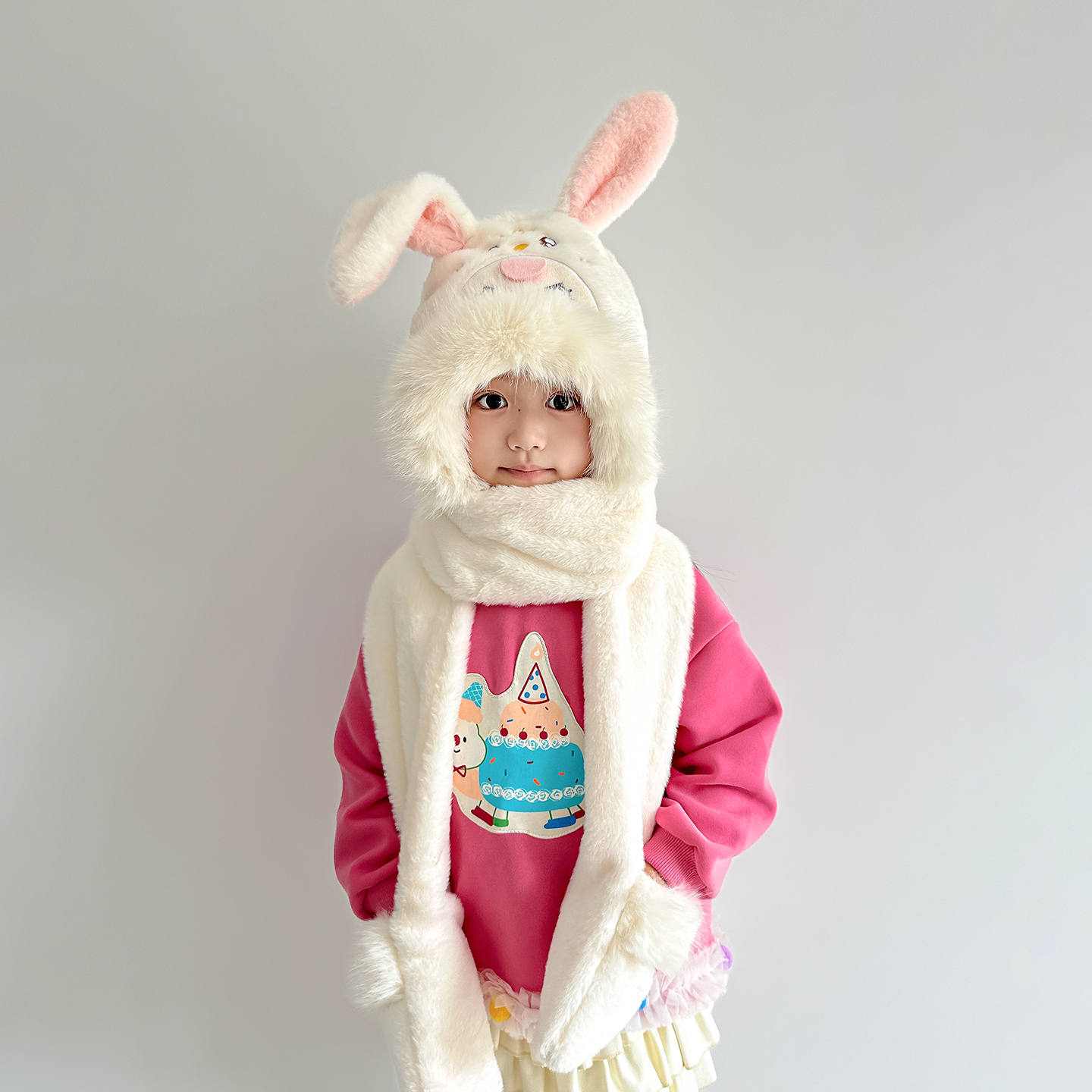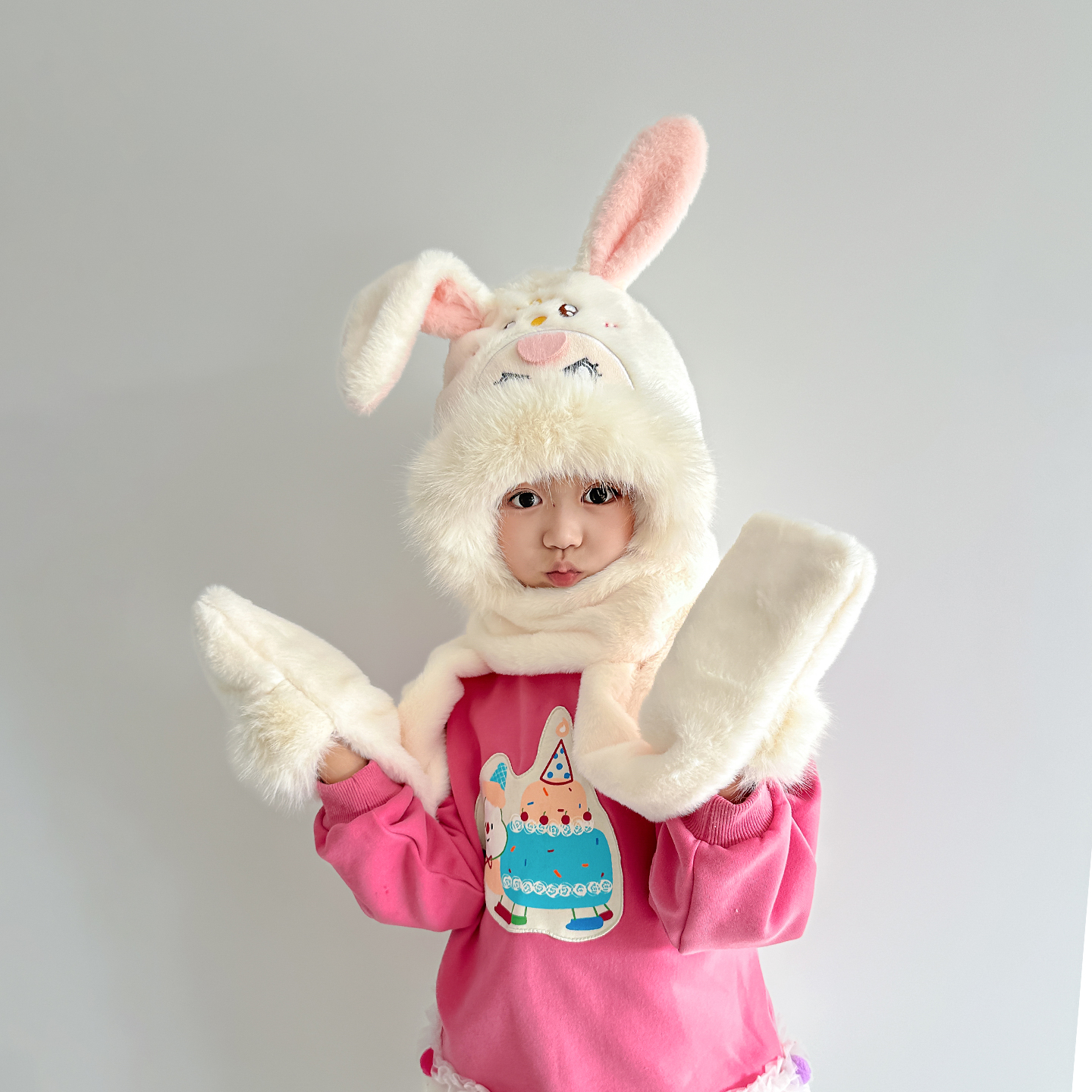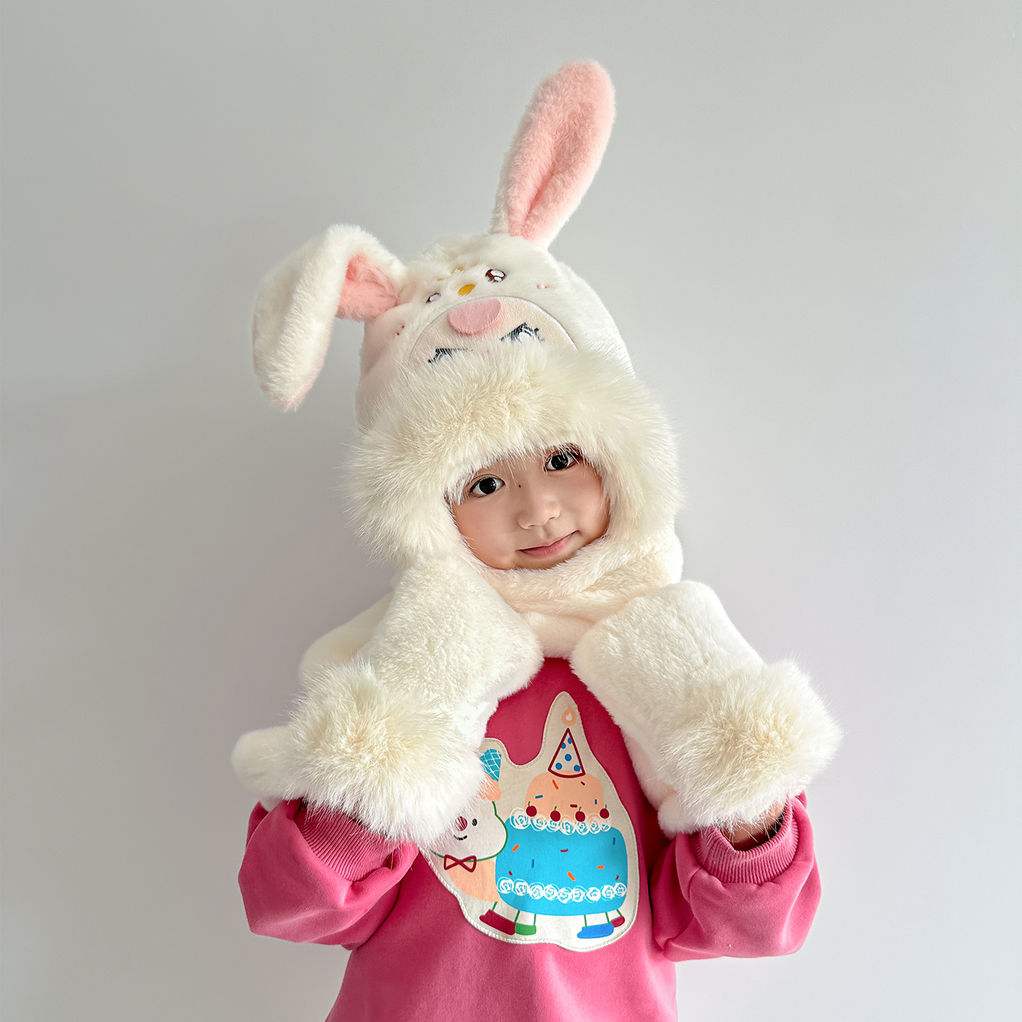 儿童帽子围巾手套一体帽冬季可爱小兔子女童护耳帽保暖防寒三件套