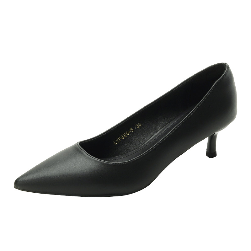 黑色浅口高跟鞋女细跟中跟5厘米尖头3cm气质名春秋工作鞋7cm单鞋