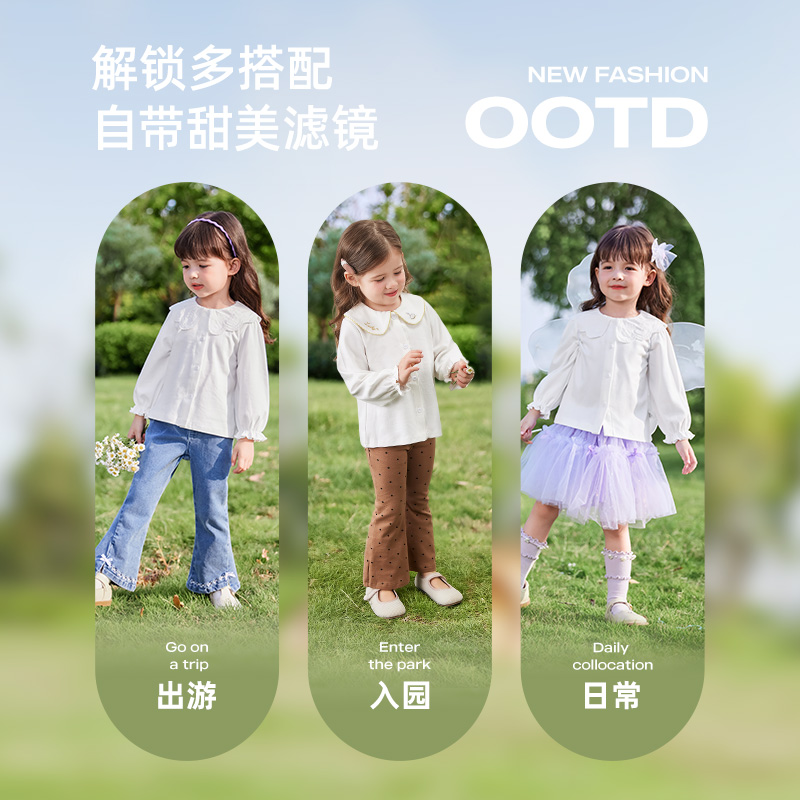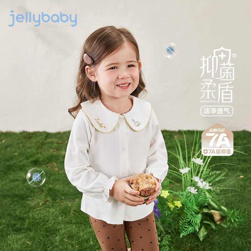 [7A抑菌]女童秋季2025新款白色衬衫翻领纯棉宝宝花边甜美儿童上衣