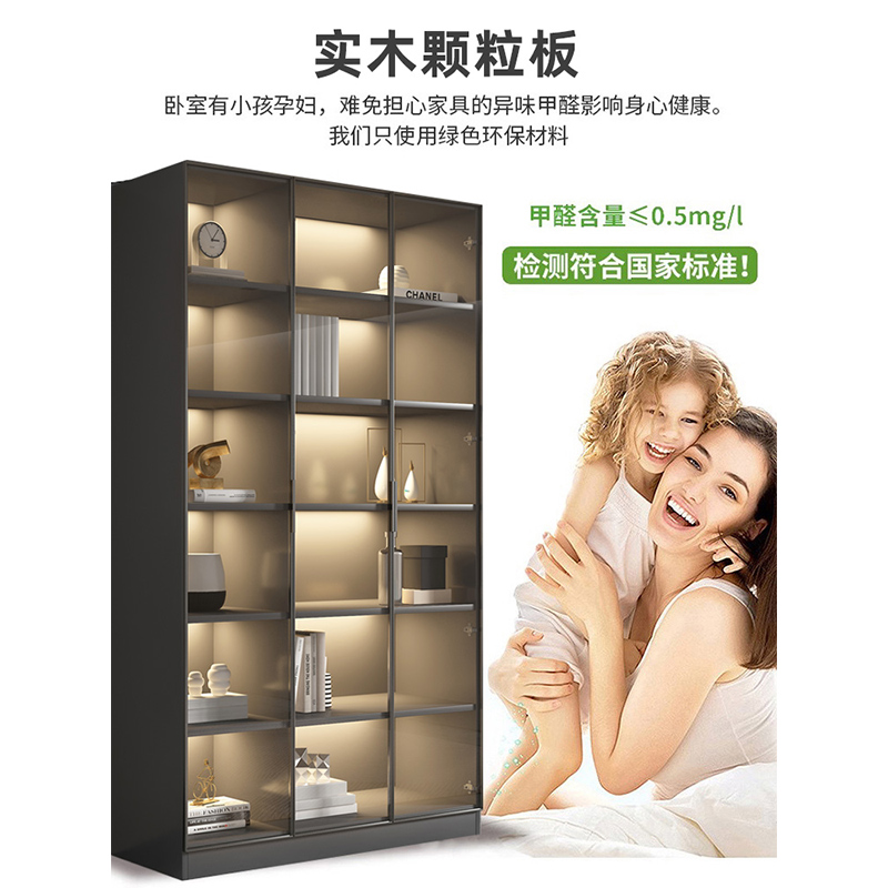 书柜一体整墙到顶书柜轻奢高档带玻璃门酒柜展示柜整墙可定制书柜