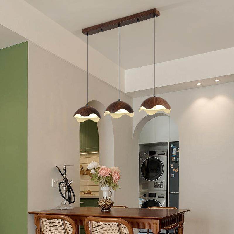 餐厅灯复古胡桃木纹中古风新中式禅意茶室吧台吊灯三头饭厅餐桌灯