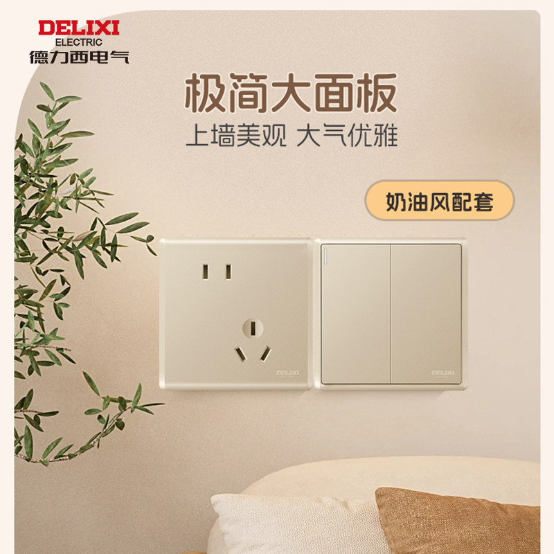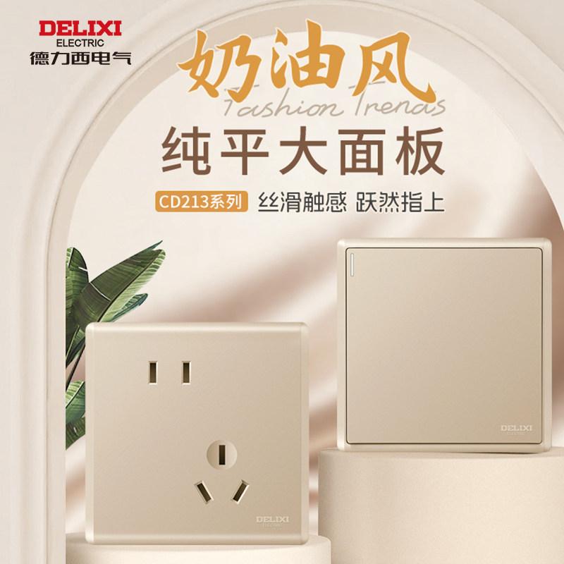 德力西开关插座家用香槟金一开五孔USB空调16A六类网络面板213金