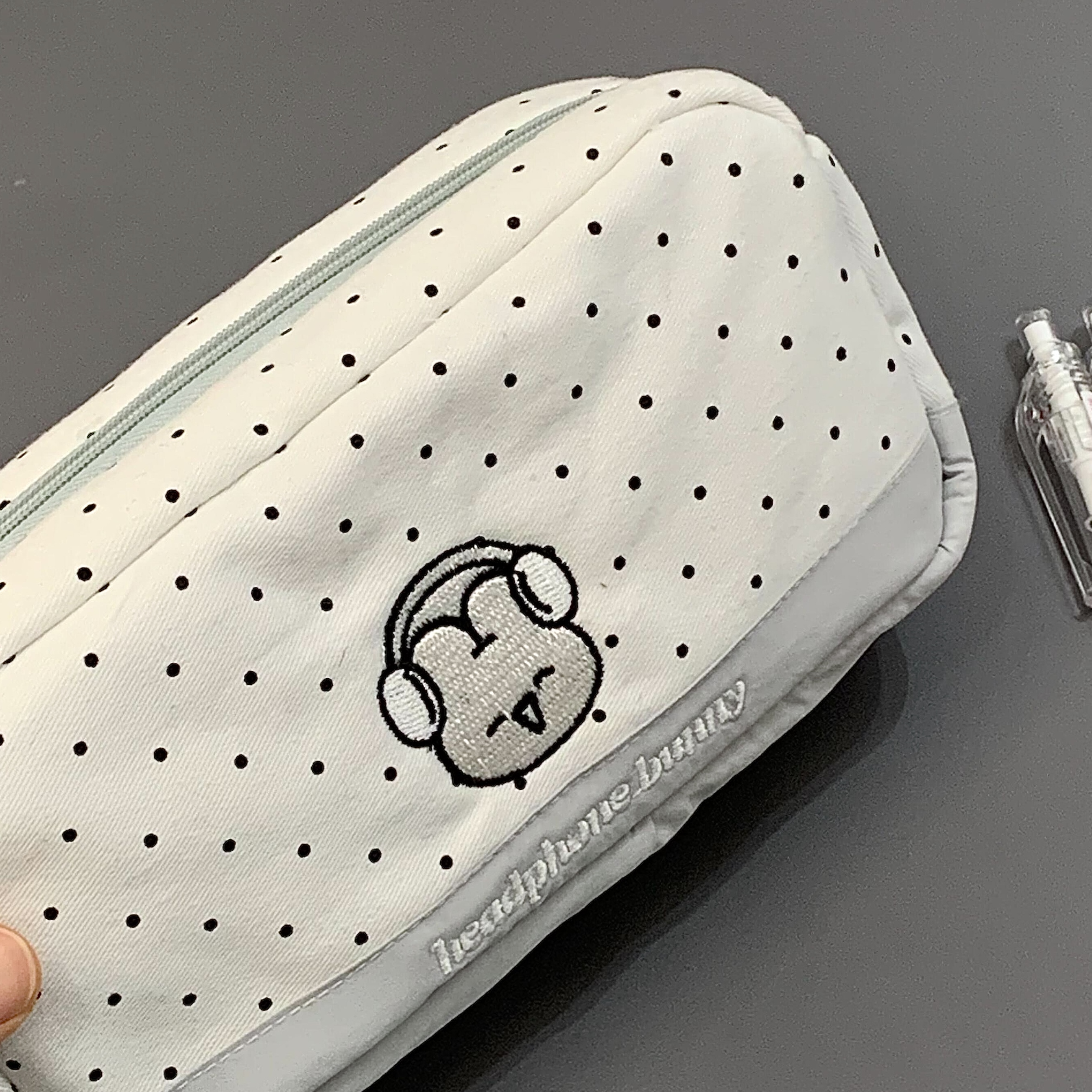 可爱波点耳机小猫痛包笔袋大容量学生文具收纳高颜值日系铅笔盒