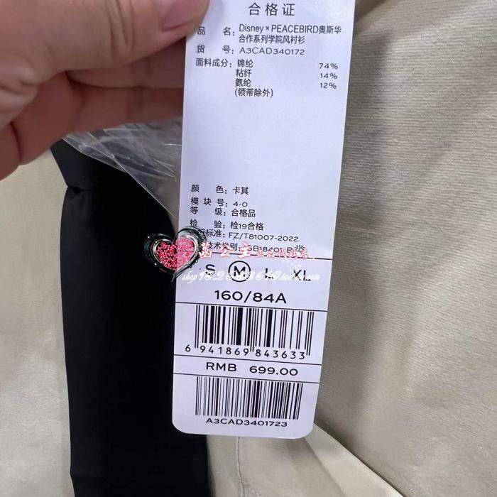 A3CAD3401太平鸟女2023秋专柜正品合作系列学院风衬衫A3CAD340172