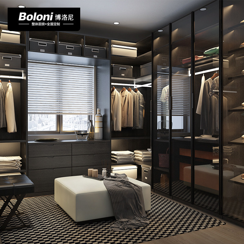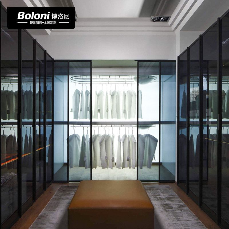 博洛尼现代轻奢全屋整体衣柜走入式衣帽间铝框玻璃衣橱定制订金