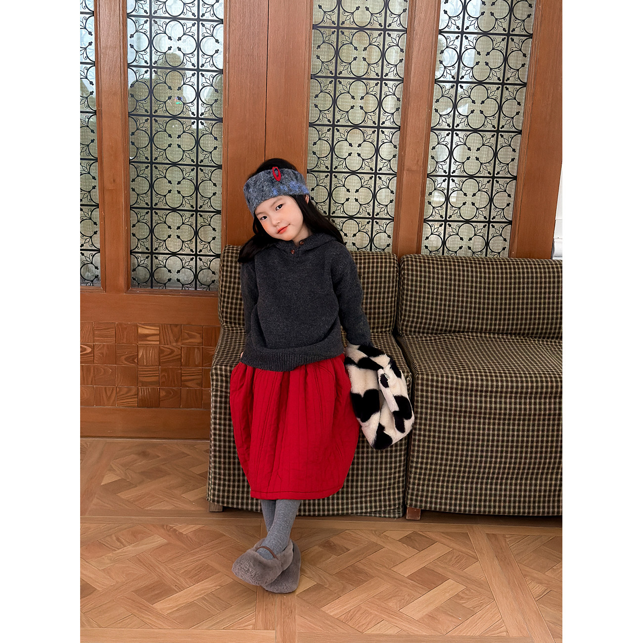 Harper kids 童装韩版休闲百搭连帽针织套头灰色毛衣女童冬季上衣