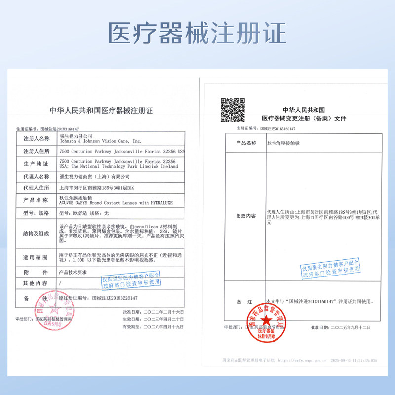 【直播专享】强生安视优欧舒适日抛5片小泪片2盒硅水凝胶隐形眼镜