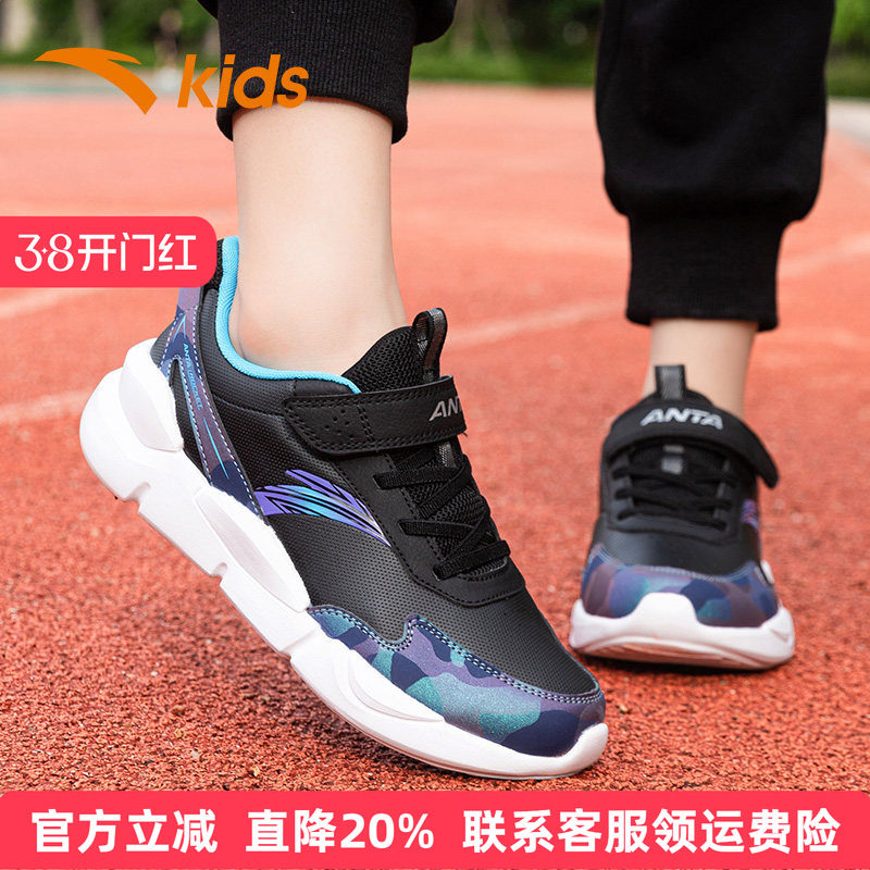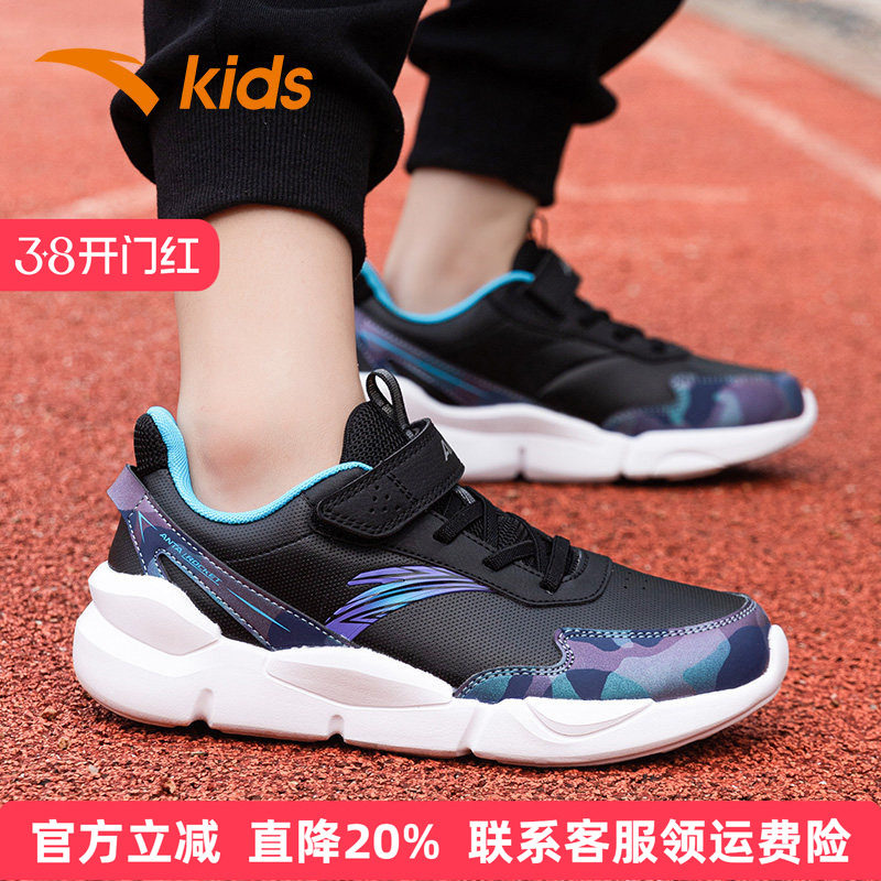 安踏童鞋男童运动鞋皮面防水儿童跑鞋春季中大童学生革面保暖鞋子