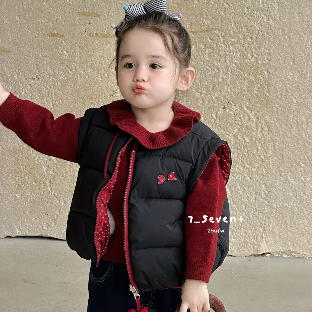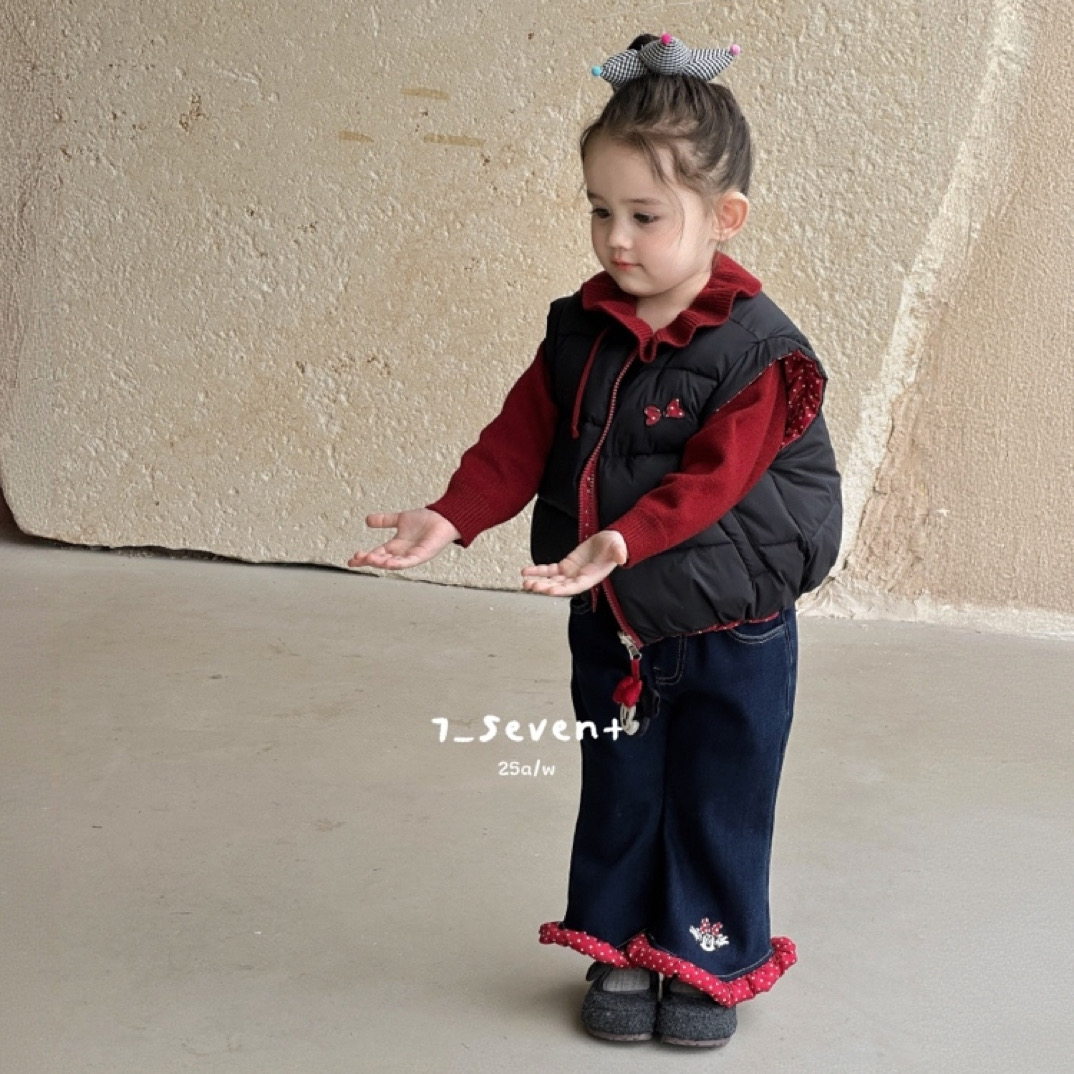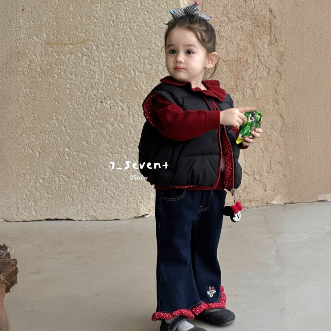 7seven 25冬 女童韩版双面穿羽绒马甲7356 加绒花边牛仔裤7301