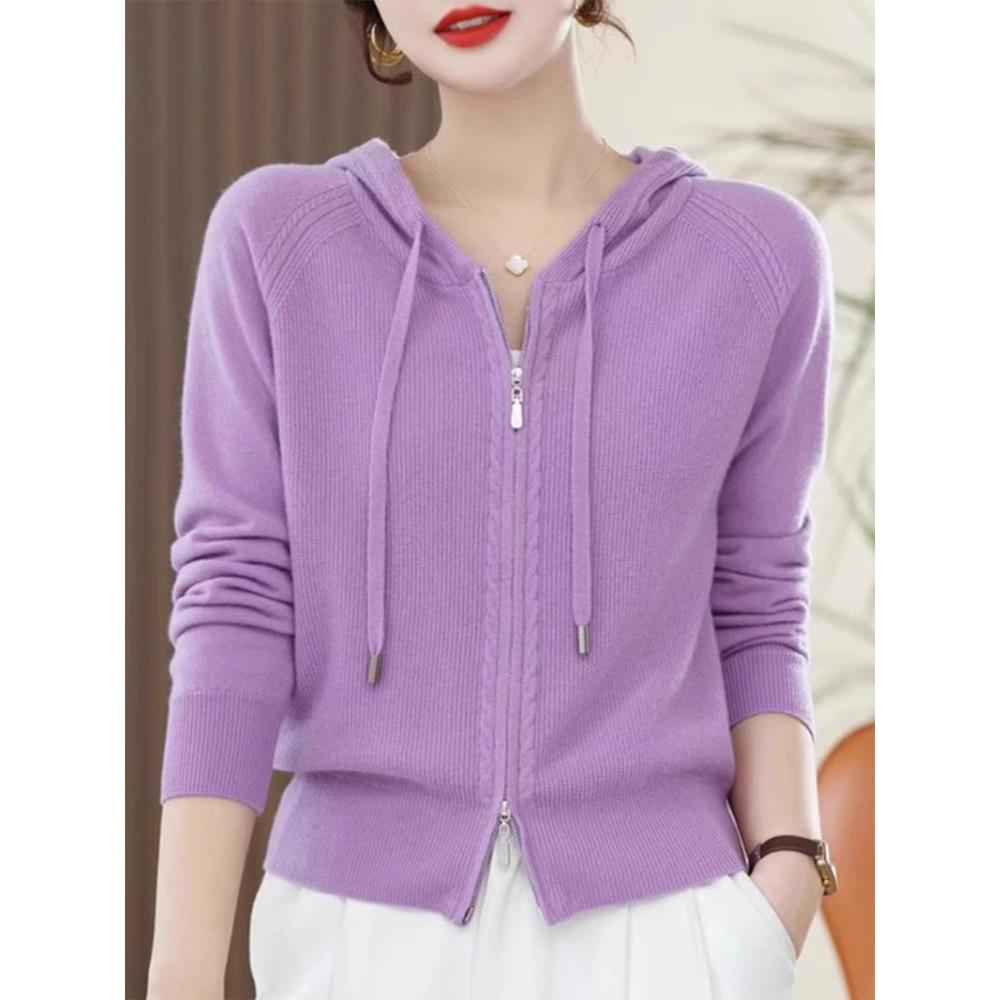 2025春秋新款开衫毛衣外套女羊毛衫针织短款上衣拉链连帽薄款卫衣