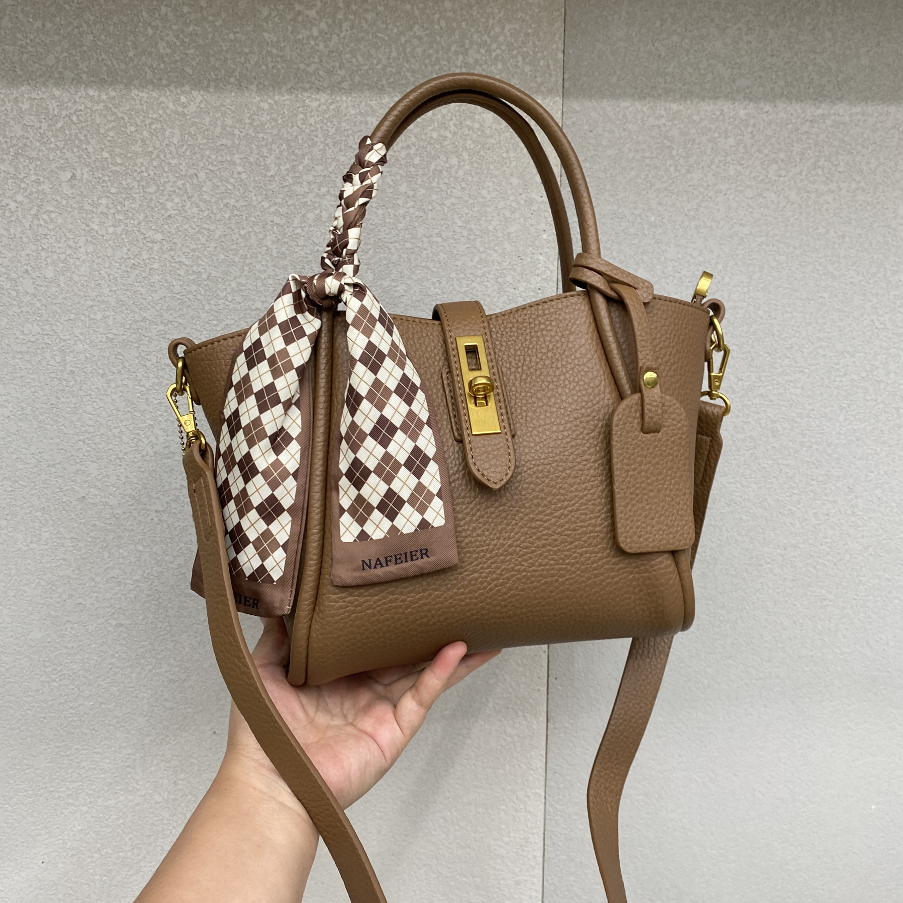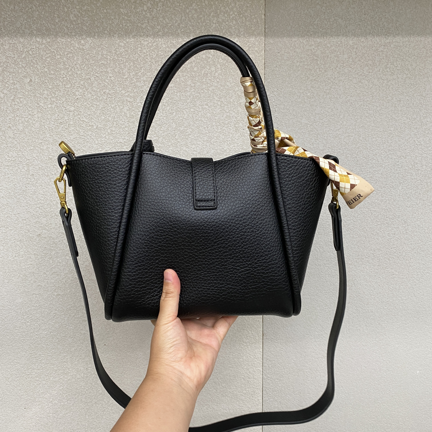 娜飞儿小众高级感牛皮菜篮子手提水桶包2024新款轻奢单肩斜挎包女