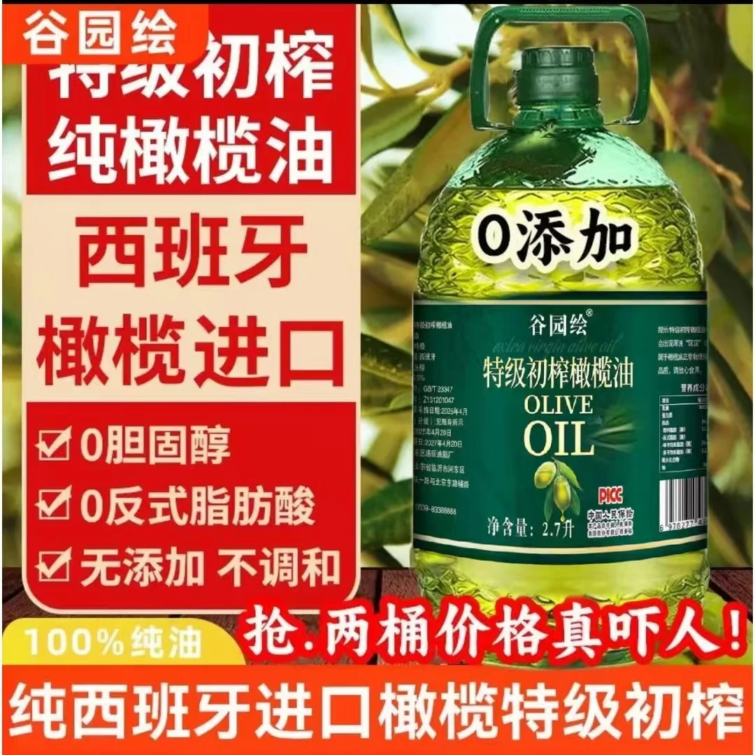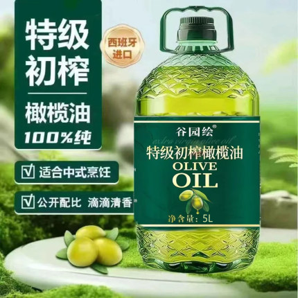 纯正橄榄油5L装特级初榨橄榄油无添加炒菜低脂健身食用油官方正品